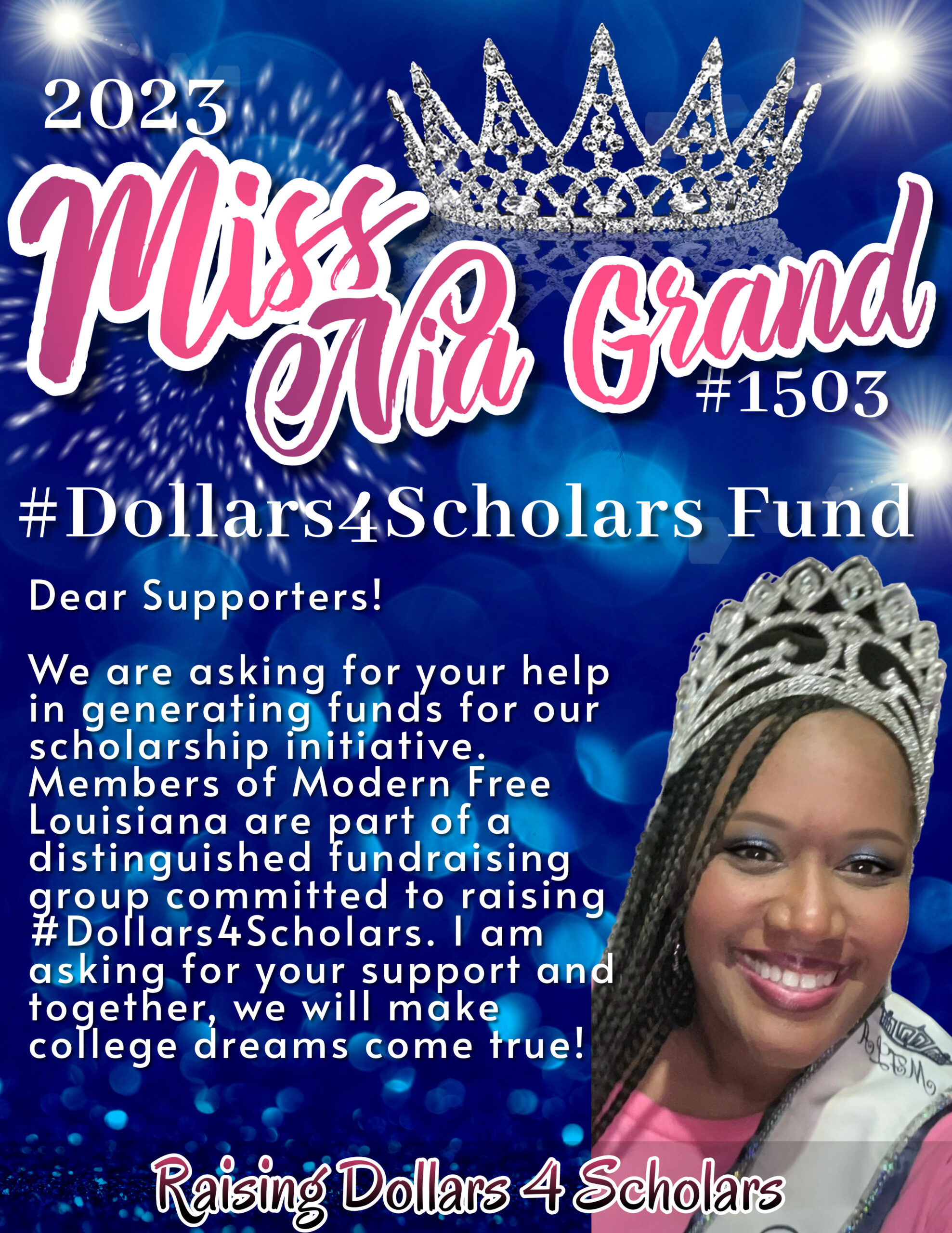 Members of Modern Free Louisiana are actively working with our 2023 Mr. Kujichagulia #1502 and Miss Nia Grand #1503 Fundraising King and Queen to raise funds to support our community endeavors. By making a contribution today, your donation will support our #Dollars4Scholars scholarship initiative. We are in our 19th year and have helped to generate over $100,000. We remain committed to being part of the collective raising funds to send students to college. We thank you for your donation and for helping to #MakeCollegeDreamsComeTrue.