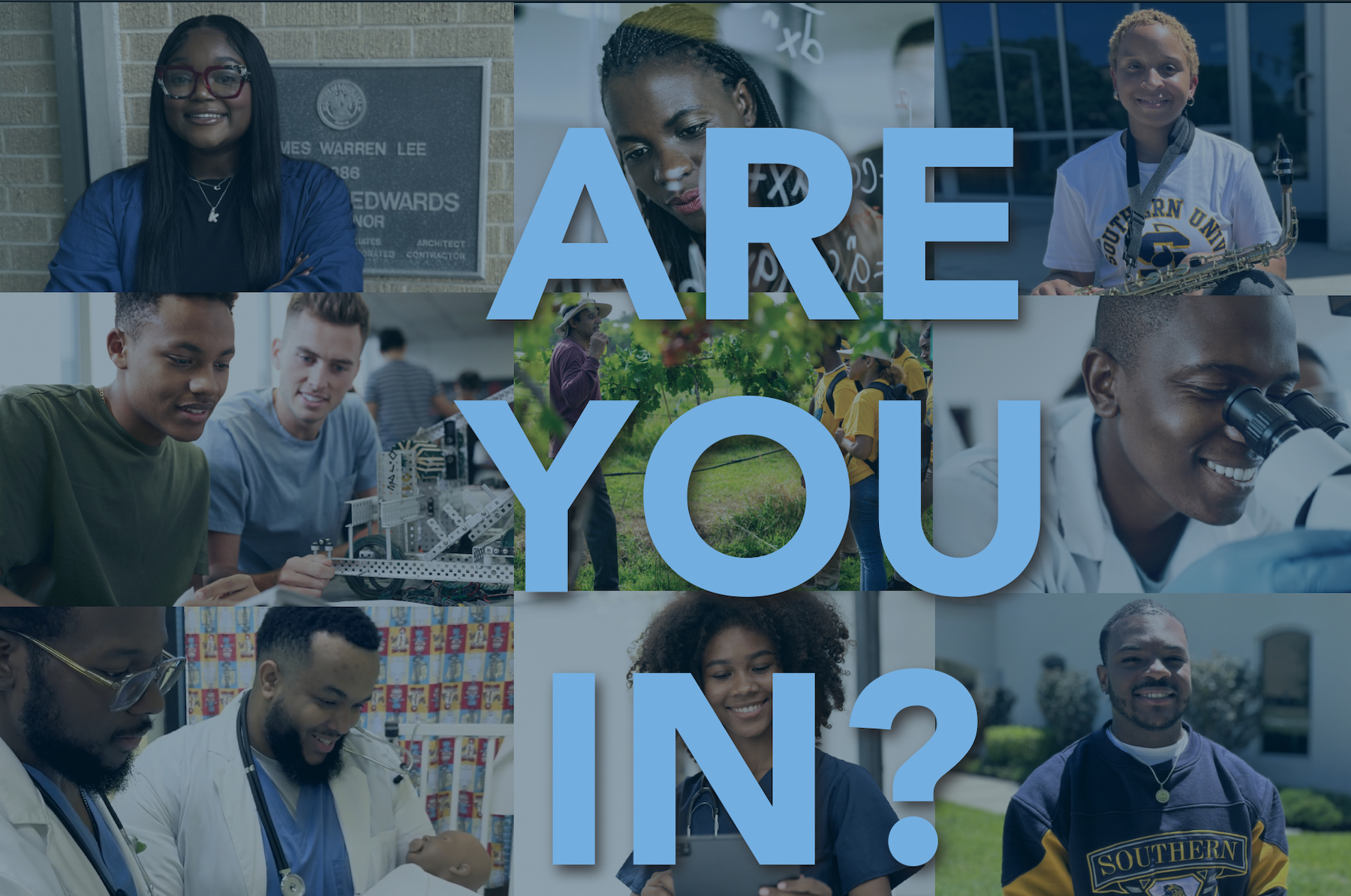 Are You In? is the Southern University System’s bold call to action—uniting alumni and supporters to drive impact through giving, advocacy, and pride. This volunteer-led campaign rallies Southernites everywhere to support the campuses and programs that matter most.