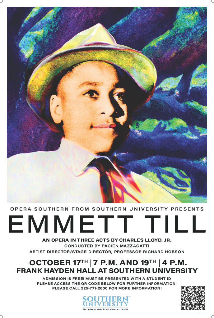 Emmett Till:An Opera In Threes Acts will be performed on October 17th at 7pm and on October 19th at 4pm in Hayden Hall at Southern University.